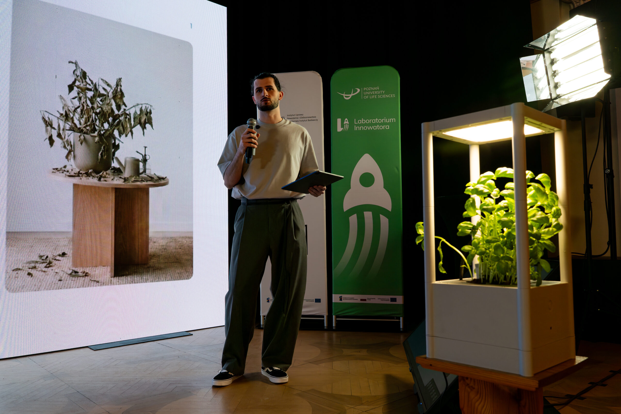 „DOT Urban Faming” to inteligentna doniczka, która posiada czujniki temperatury oraz wilgotności, a także regulowane oświetlenie. Poprzez aplikację roślina „mówi” Ci czego potrzebuje, a ty możesz dopasować odpowiednie ustawienia oraz podlać roślinkę za pomocą systemu automatycznego podlewania. „DOT Urban Farming” to nie tylko usprawnienie, ale także edukacja. System uczy jak zajmować się daną rośliną, jakie warunki są dla niej optymalne.